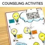CBT activities for kids to help them understand their feelings, thoughts, and actions. Students will learn to identify negative thinking, change behaviors, and problem solve.
